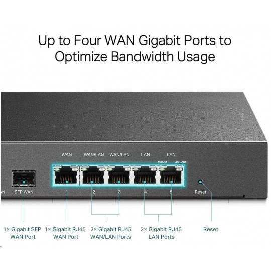 - Až 5 portov WAN - 1 gigabitový SFP WAN port a až 4 gigabitové RJ45 WAN porty optimalizujú využitie šírky pásma.