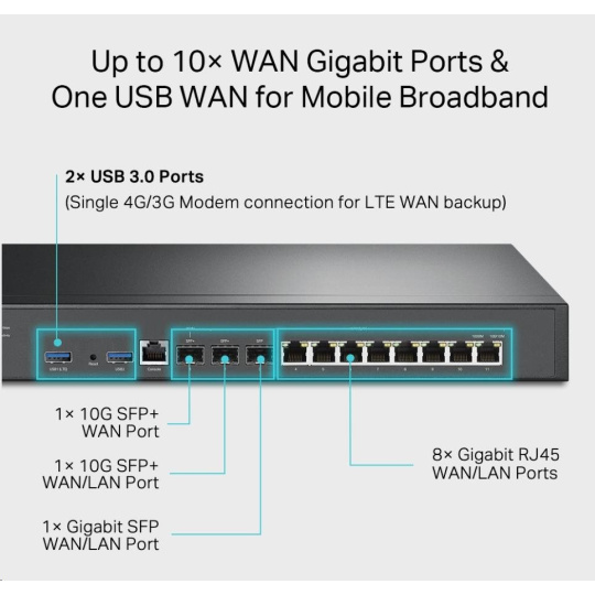 - Až 10 portov WAN - Porty Fiber a RJ45 WAN s vyvážením záťaže zvyšujú efektivitu viaclinkového širokopásmového pripojenia.