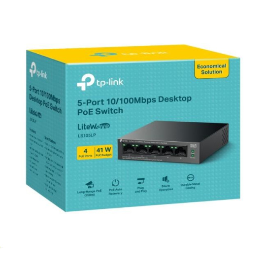 TP-Link LiteWave switch LS105LP (5x100Mb/s, 4xPoE, 41W, fanless)