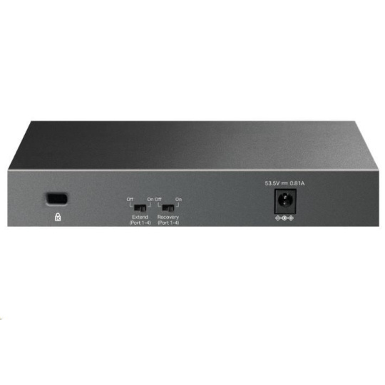| Interface | • 6× 10/100 Mbps RJ45 portov (4× 10/100 Mbps 802.3af/at PoE portov) • Automatické vyjednávanie • AUTO MDI/MDIX |