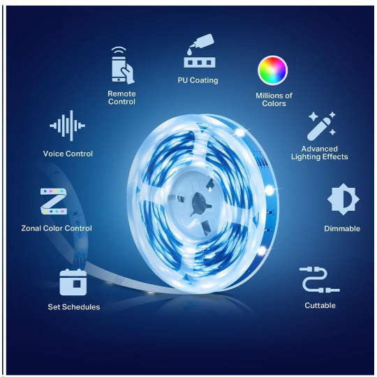 - Hlasové ovládanie – pomocou jednoduchých hlasových povelov ovládajte svetelný pásik cez Alexu alebo Google Asistenta.