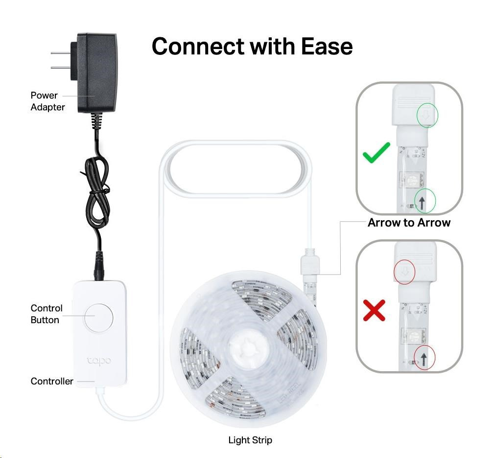 - Pripojenie podľa vašich predstáv – môžete ho používať s chytrým asistentom, hubom alebo ho pripojiť priamo k aplikácii Tapo. Ovládajte svetelný pásik spôsobom, ktorý vám vyhovuje.