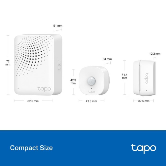 | Obsah balenia | Tapo H100 × 1 Tapo T100 × 1 Tapo T110 × 2 Tlačidlová batéria CR2450 × 1 Tlačidlová batéria CR2032 × 2 3M obojky × 7 Rýchle štartovacie pokyny |
