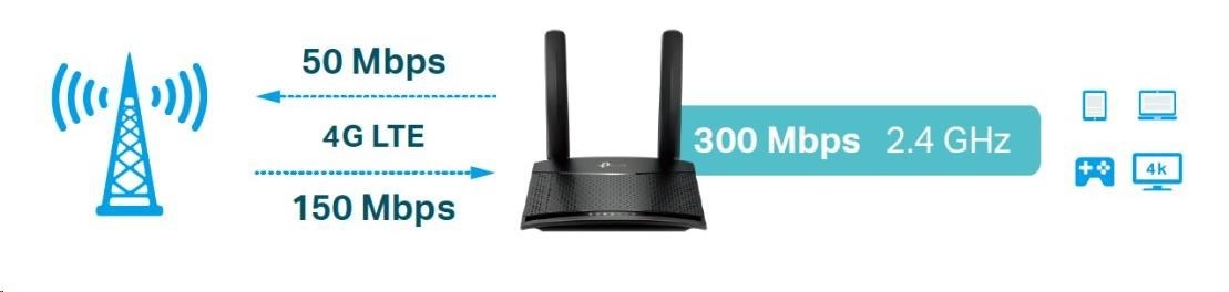 TP-Link TL-MR100 WiFi4 router (N300, 4G LTE, 2,4GHz, 1x100Mb/s LAN, 1x100Mb/s LAN/WAN, 1xmicroSIM)