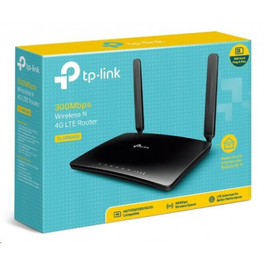 TP-Link TL-MR6400 WiFi4 router (N300, 4G LTE, 2,4GHz, 3x100Mb/s LAN, 1x100Mb/s LAN/WAN, 1xmicroSIM)