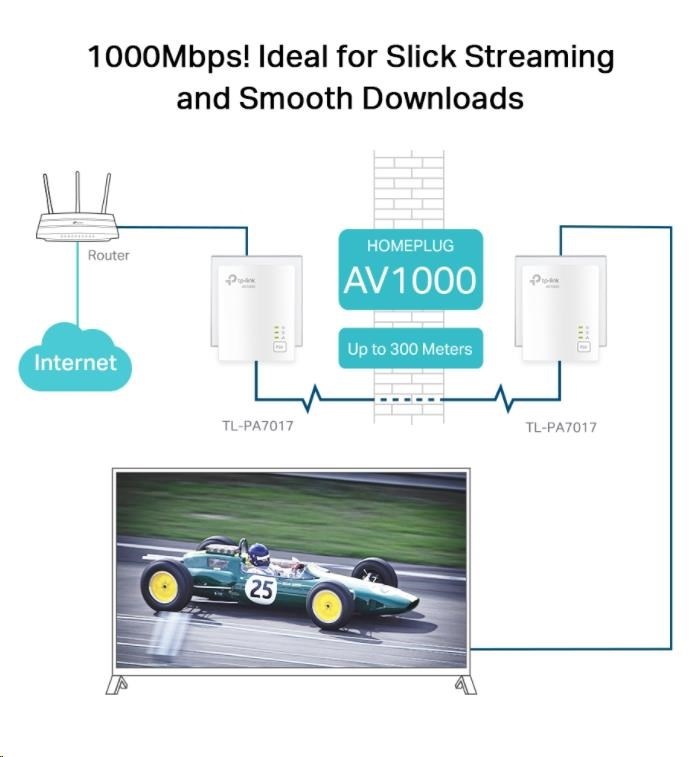 - Standard HomePlug AV2 - vysokorýchlostný prenos dát až 1000 Mb/s, ideálny pre všetky vaše online potreby