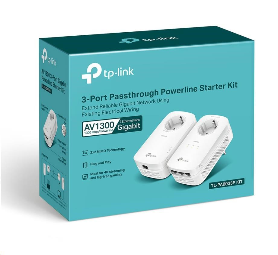 TP-Link TL-PA8033P KIT průchozí powerline set (AV1300,3xGbE,1xGbE, HomePlug AV2)