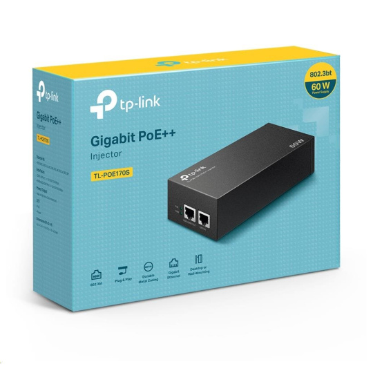 | Obsah balenia | PoE++ Injektor TL-POE170S Návod na inštaláciu Napájací kábel RJ45 kábel |