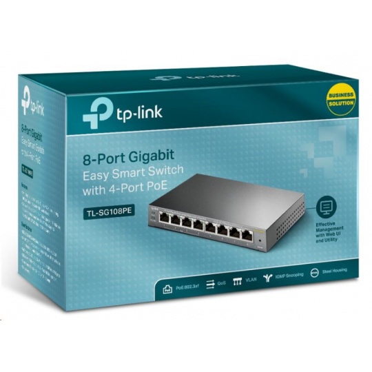 TP-Link Easy Smart switch TL-SG108PE (8xGbE, 4xPoE+, 64W, fanless)