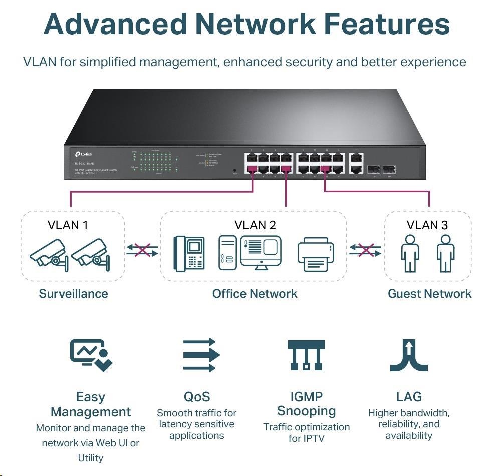 TP-Link CCTV Easy Smart switch TL-SG1218MPE (16xGbE, 2xGbE/2xSFP combo, 16xPoE+, 250W)