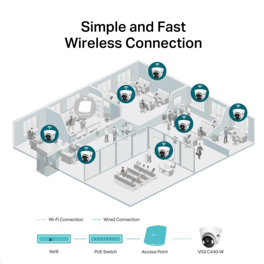 - Bezdrôtové pripojenie: Jednoduché a rýchle nasadenie na miesta pokryté Wi-Fi signálom.