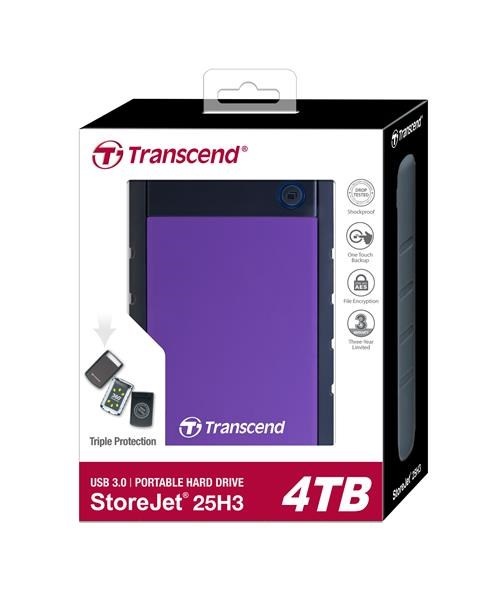 Externý pevný disk TRANSCEND 2,5" USB 3.1 StoreJet 25H3P, 4 TB, fialový (odolný voči nárazom)