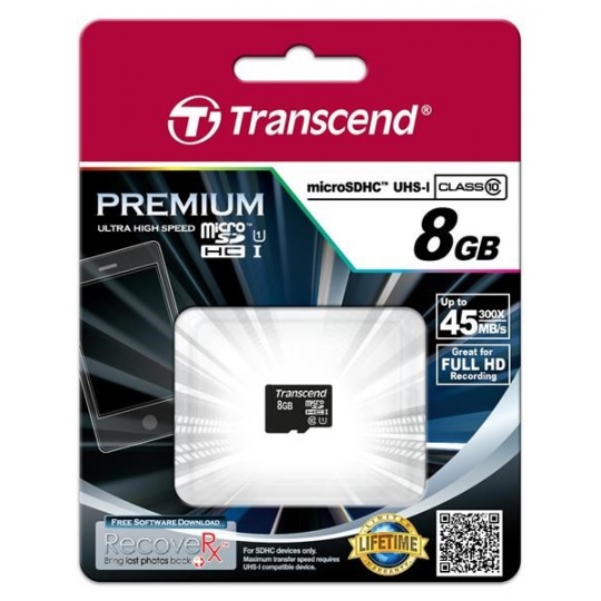 TRANSCEND MicroSDHC 8GB Premium, Class 10 UHS-I 300x, bez adaptéra