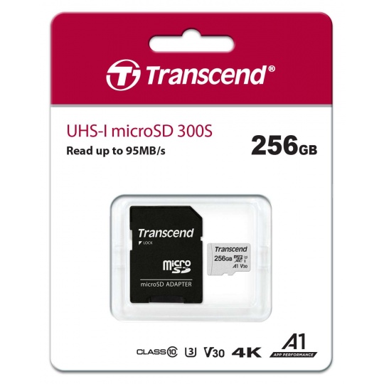 Karta TRANSCEND MicroSDXC 256GB 300S, UHS-I U3 V30 + adaptér