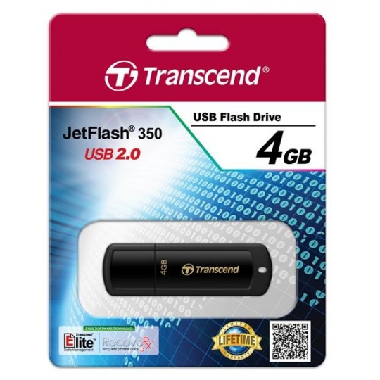 TRANSCEND Flash disk 4GB JetFlash®350, USB 2.0 (R:13/W:4 MB/s) čierna