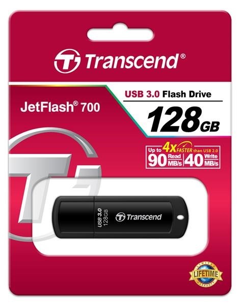 TRANSCEND Flash disk 128GB JetFlash®700, USB 3.0 (R:90/W:40 MB/s) čierna