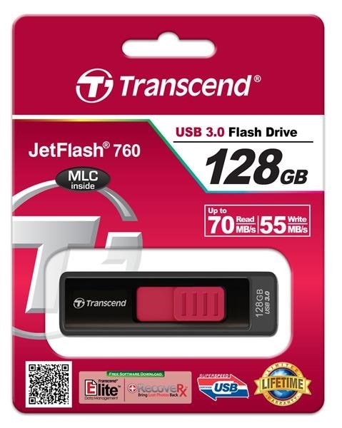 TRANSCEND Flash disk 128GB JetFlash®760, USB 3.0 (R:85/W:34 MB/s) čierna/červená
