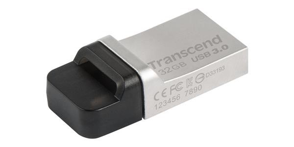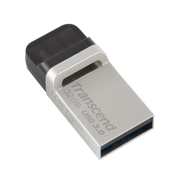 TRANSCEND Flash disk 32GB JetFlash®880S, USB 3.0/micro USB (R:90/W:20 MB/s) strieborná