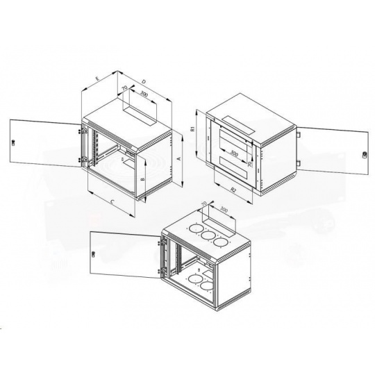 19" jednodielny rack TRITON 18U/400 mm, 6 otvorov pre ventilátory