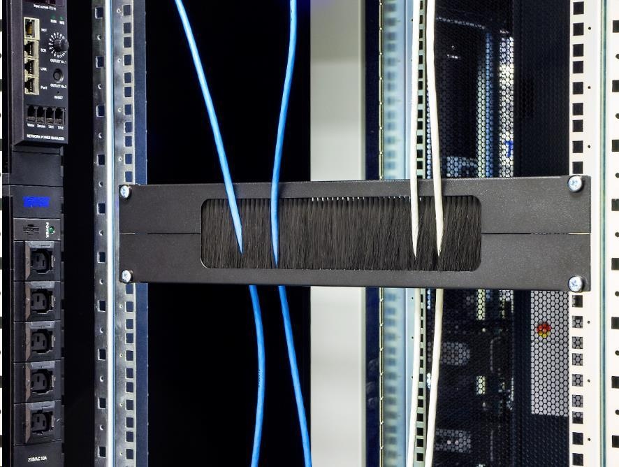 19" 2U priechodný panel, horizontálne delený, kefka, otvor 330 x 55 mm.
