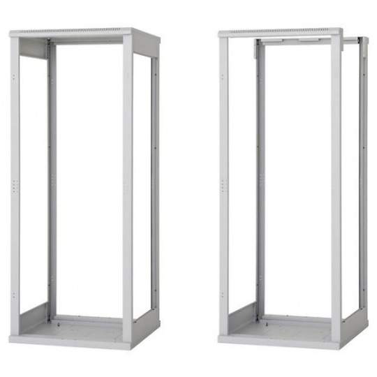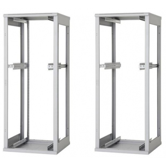 (platí pre šírku stojana 800 mm). Systém umožňuje inštaláciu posuvných vertikálnych koľajníc v rozpätiach 19", 21" a 23", presne podľa požiadaviek inštalovaného zariadenia.
