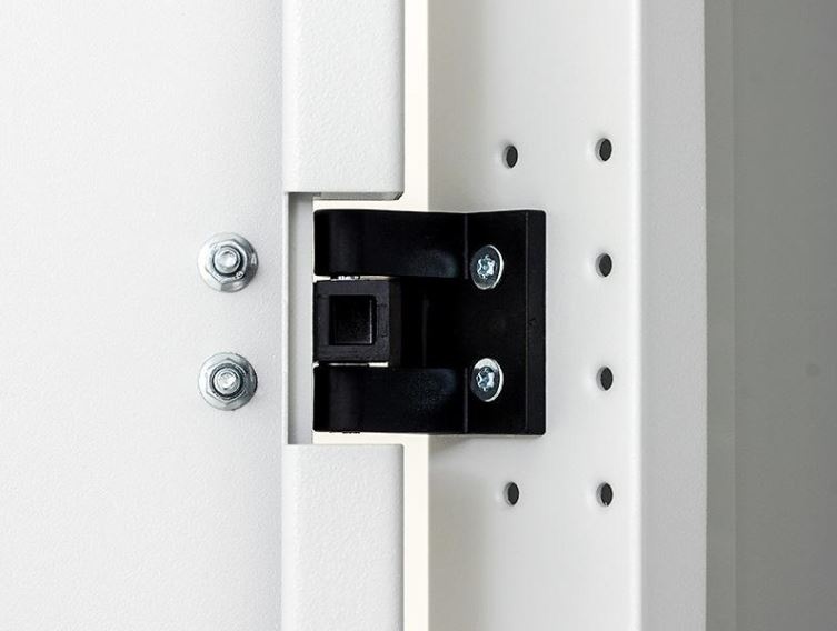 19" vertikálne koľajnice možno plynule nastaviť v ľubovoľnej hĺbke stojana. To uľahčuje inštaláciu zariadenia a usporiadanie pripojovacích káblov.