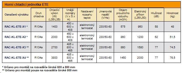 Horná chladiaca jednotka ETE. Špeciálne navrhnuté na montáž na hornú časť rozvádzača v stojane.