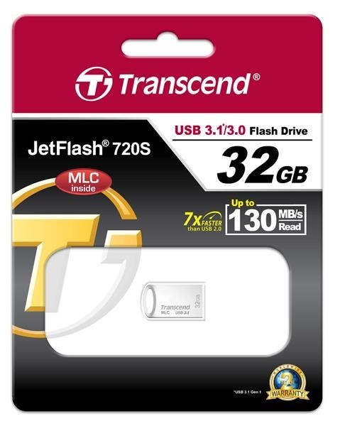 TRANSCEND Flash disk 32GB JetFlash®720S, USB 3.1, riešenie MLC (R:130/W:45 MB/s) striebro
