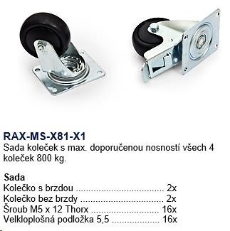 Max. nosnosť súpravy 4 koliesok je 800 kg vrátane rozdeľovača..