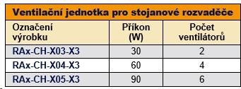 Ventilačná jednotka pre stojanové rozvádzače - inštaluje sa do uzáveru z vonkajšej strany rozvádzača, do základne z vnútornej strany rozvádzača. Pri inštalácii do základne skrine sa musí použiť montážny rám spodnej ventilačnej jednotky - RAx-CH-Xxx-X1, ktorý sa inštaluje pomocou obojstrannej lepiacej pásky.