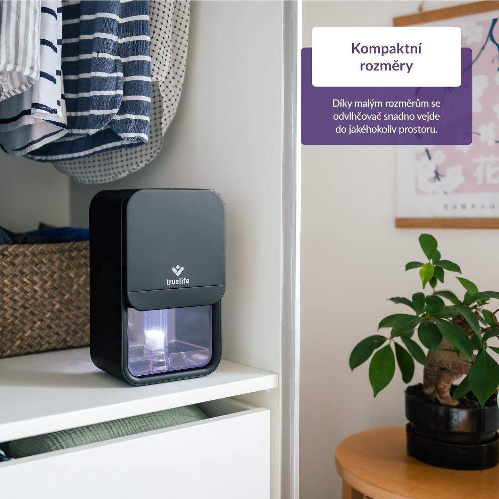 TrueLife AIR Dehumidifier DH3 bol navrhnutý s ohľadom na každodennú realitu, teda jeho hlavným cieľom je, aby fungoval spoľahlivo, ale zároveň nezaberal veľa miesta. Vďaka svojmu elegantnému a priestorovo úspornému dizajnu sa ľahko vmestí do spálne, obývačky aj kancelárie, bez narušenia vzhľadu interiéru. Napriek tomu dokáže efektívne znižovať vlhkosť v miestnosti a vytvoriť zdravšie prostredie, v ktorom sa vám bude lepšie dýchať.