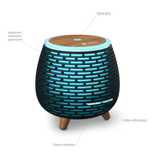 Aromaterapeutická funkcia difuzéra prináša mnoho benefitov pre telo i myseľ a veľmi pozitívne účinky má aj ako zvlhčovač vzduchu. Naplňte ho iba vodou a para zvlhčí miestnosť na optimálnu hodnotu, aby sa vám lepšie dýchalo. Zvlhčený vzduch pomáha aj pri problémoch s astmou, suchou pokožkou a ekzémami. Keď voda klesne pod minimálnu hranicu, difuzér sa automaticky vypne, takže ho bez obáv môžete nechať pustený aj počas spánku.