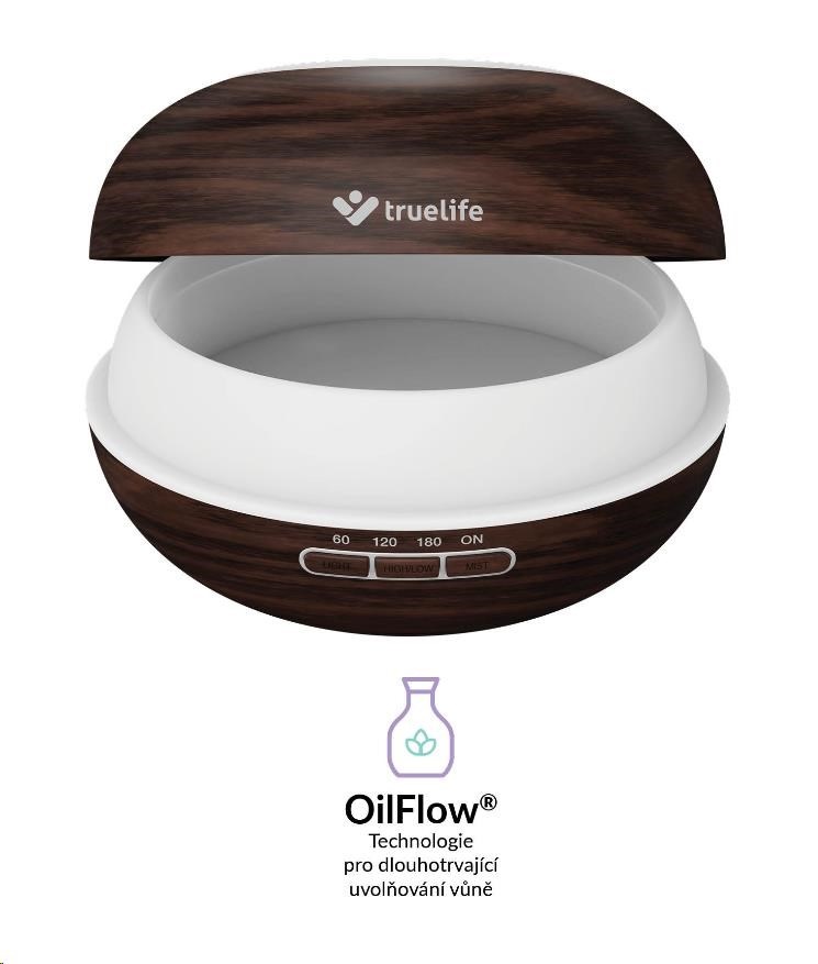 Stačí stlačiť jediným tlačidlom a aroma difuzér Truelife provoní vzduch v miestnosti vašou obľúbenou vôňou. Vytvorí vám príjemnú atmosféru pre relaxáciu, cvičenie jogy alebo meditáciu. Stačí do nádržky s vodou pridať pár kvapiek vášho obľúbeného esenciálneho oleja a OilFlow® technológia sa postará o zvyšok. Difuzér eliminuje okolité zápachy a provoní vzduch v miestnosti vašou obľúbenou vôňou. Využijete ho aj ako zvlhčovač vzduchu. Funguje na princípe ultrazvuku, voda v nádrži sa mení na jemnú paru, ktorá sa mieša so vzduchom v miestnosti a takmer okamžite ju zvlhčuje na optimálnu hodnotu.