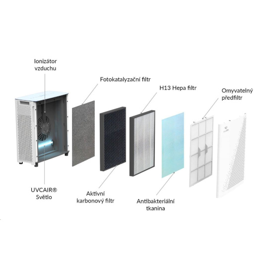 7-násobný filtračný systém odstraňuje zo vzduchu prach, peľ, zvieracie alergény, baktérie a víry, koronavírusy, spóry plesní. Najrozšírenejšie alergény sú tak zo vzduchu odstránené.