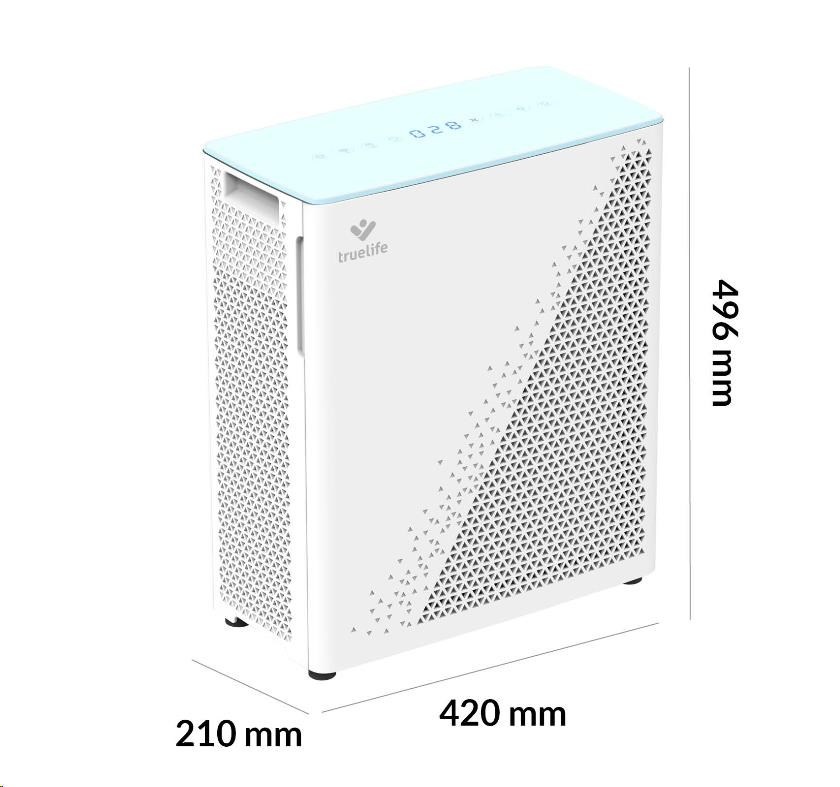 Čistička vzduchu TrueLife vyčistí až 310 m3 vzduchu za hodinu. Je vhodná do miestnosti o veľkosti 35-40 m2, môžete ju bez obáv prenášať. Čistička celkovo zlepšuje kvalitu vzduchu, ničí víry, baktérie a ďalšie nečistoty a môže tak významne pomôcť alergikom alebo astmatikom. Čistička je vybavená farebnými indikátormi kvality vzduchu, funkciou automatickej detekcie nečistôt a automatickým čistením. Ak bývate na mieste, kde sa často práši, poteší vás prítomnosť prachového senzora. 7-násobná filtračná sústava v podobe predfiltra, anti-bakteriálneho filtra, HEPA filtra, uhlíkového filtra, katalytického filtra, UV svetla a ionizácie zachytí až 99,9 % peľu a prachu a vyčistí 93,5 % výparných organických látok. Zároveň zachytáva aj víry a koronavírusy.