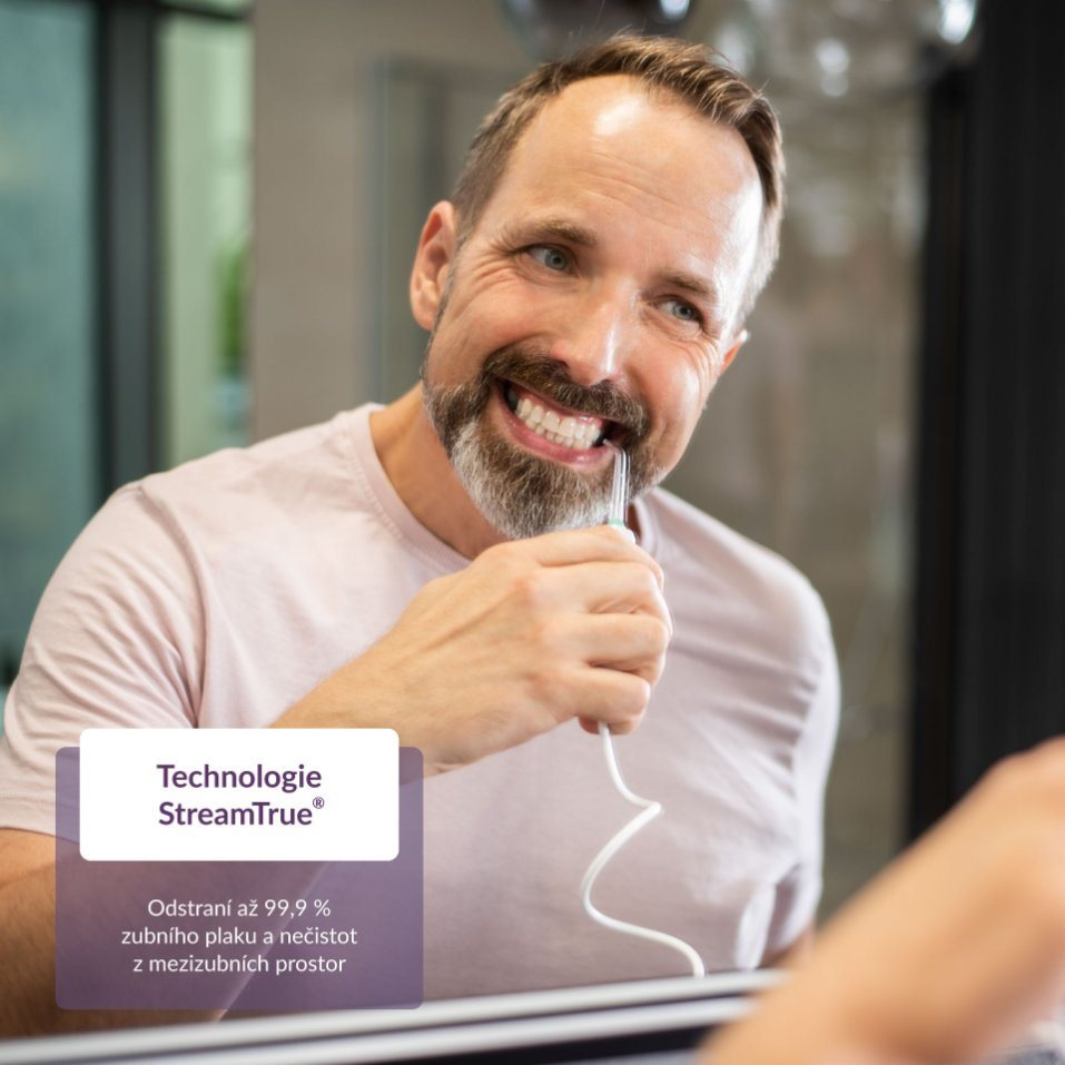 Pravidelné čistenie medzizubných priestorov by malo byť každodennou súčasťou vašej dentálnej rutiny. V dospelosti totiž vzniká až 95 % kazov práve v úzkych medzierkach medzi zubami. Ich pravidelné čistenie navyše pomáha predísť aj zápalu ďasien alebo paradentóze. S ústnou sprchou TrueLife AquaFloss Station S600 je čistenie medzizubných priestorov jednoduchšie a šetrnejšie, než pri použití medzizubných kefiek, či nití. Vďaka technológii StreamTrue® zubná sprcha odstráni až 99 % zubného povlaku a vyčistí vaše zuby tak, ako to samotná kefka nikdy nedokáže. Sprcha ponúka 10 tlakových úrovní a 6 špeciálnych trysiek pre rôzne dentálne potreby.