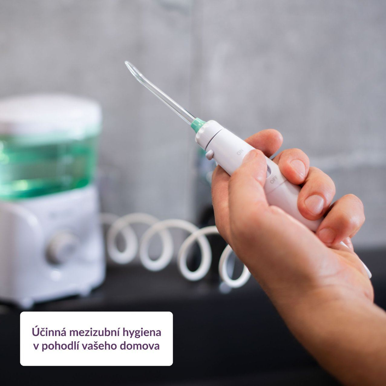 Hlavica trysky je otočná o 360 stupňov, takže jednoducho vyčistí všetky zákutia vašich úst.