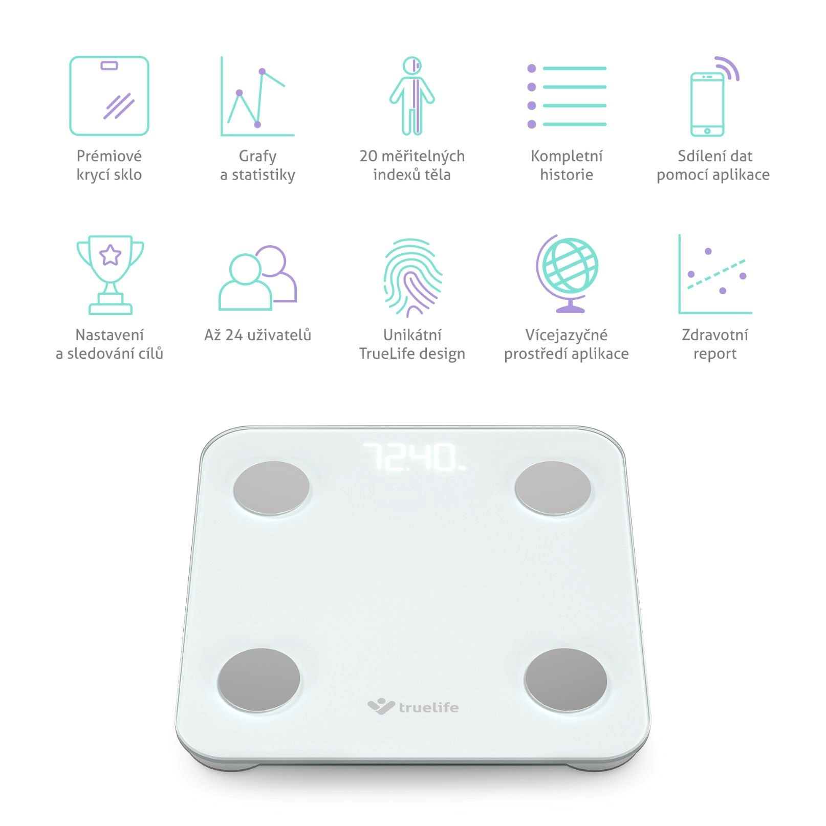 TrueLife FitScale W1 BT White - bioelektrická impedanční bluetooth váha