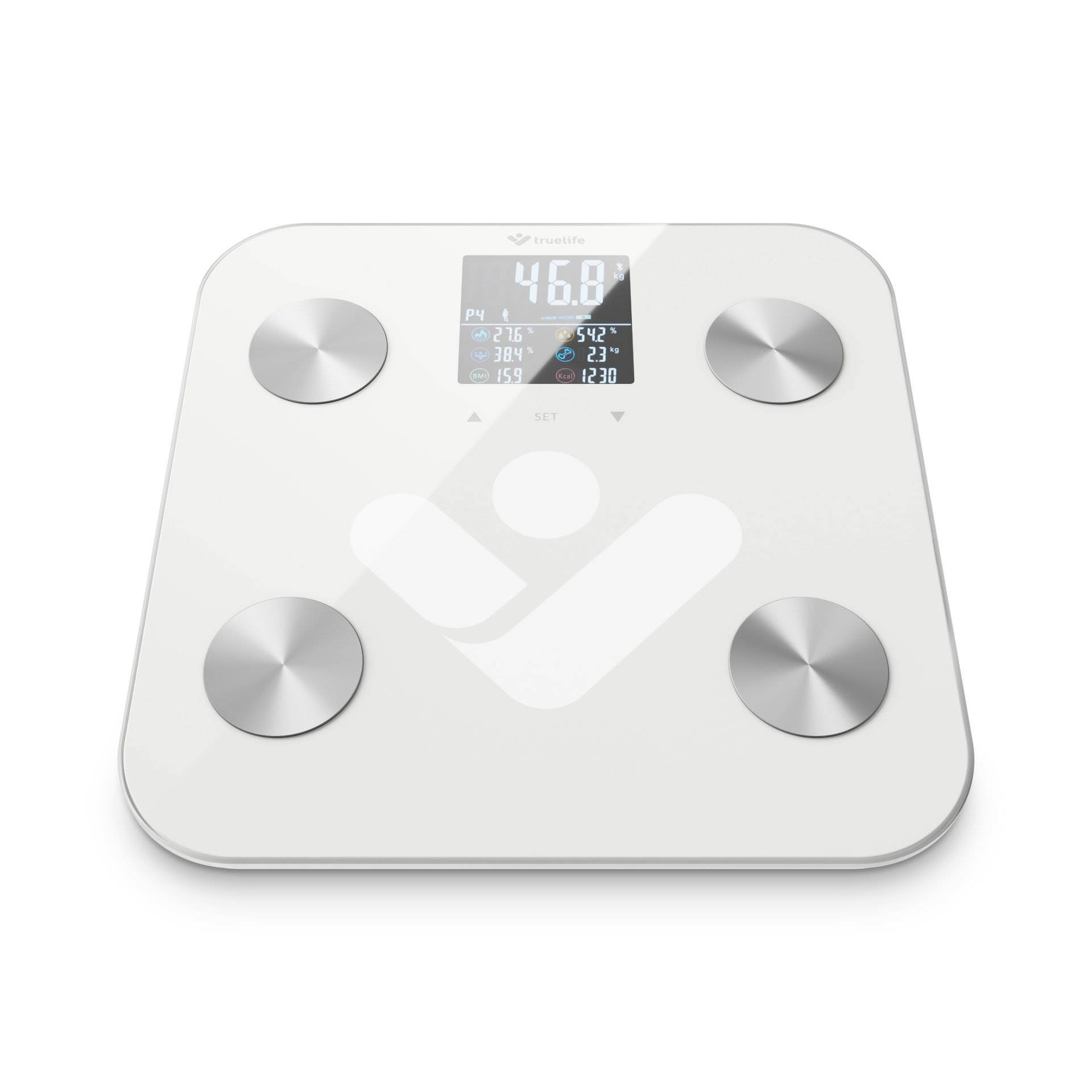 Predstavte si osobnú váhu tak šikovnú, že vám umožní dokonale poznať vlastné telo. TrueLife FitScale W6 BT to dokáže. Veľmi presne ukáže vašu aktuálnu hmotnosť a pridá kopu ďalších užitočných informácií vďaka bioelektrickej impedančnej analýze. Všetko prehľadne vidíte na farebnom LCD displeji so 7 indexmi tela. Váha je tak inteligentná, že automaticky rozozná používateľa. Prémiové krycie sklo unesie hmotnosť až 180 kg. Váha postačí pre rýchlu diagnostiku tela, ale pokiaľ vás zaujíma popis všetkých meraných indexov, skvelá je tiež mobilná aplikácia. Stačí prepojiť váhu cez Bluetooth s telefónom a v aplikácii hneď vidíte kompletný telesný reporting a štatistiky.