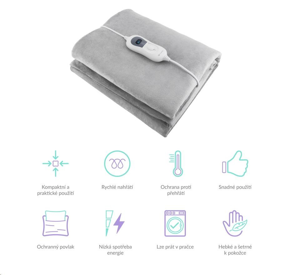 Po 3 hodinách sa prikrývka automaticky vypne a šetrí energiu.