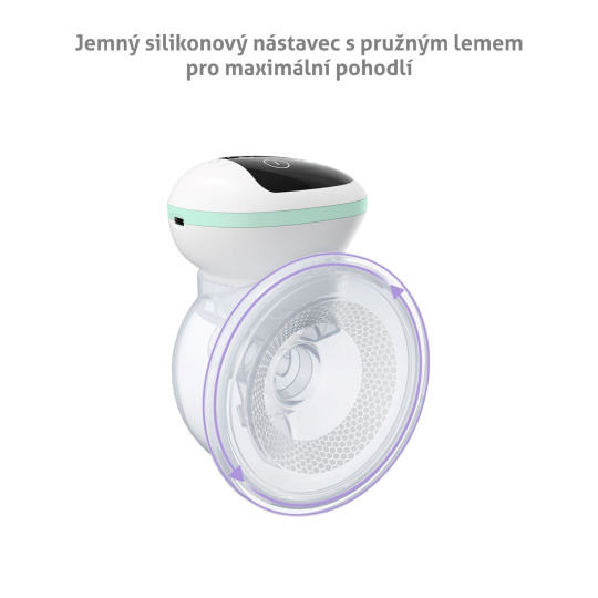 Priloženie odsávačky k prsníku je príjemné vďaka mäkkému nástavcu z jemného silikónu, ktorý sa prsníku krásne prispôsobí a je šetrný k pokožke.