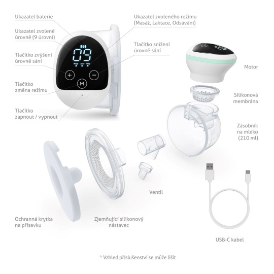 Súčasťou odsávačky je zabudovaný zásobník na mlieko s objemom 210 ml.