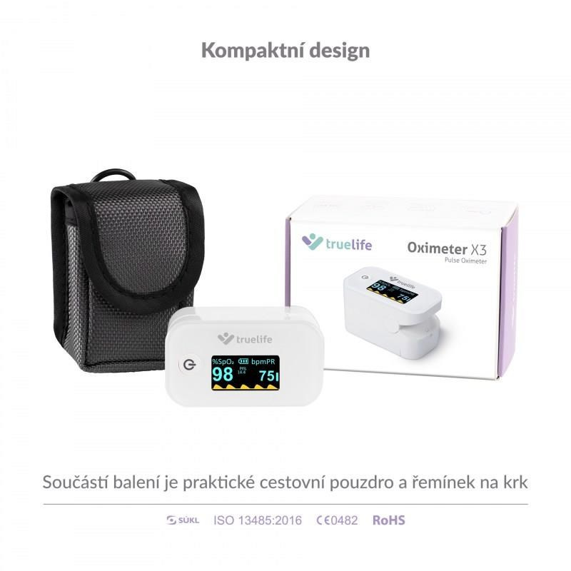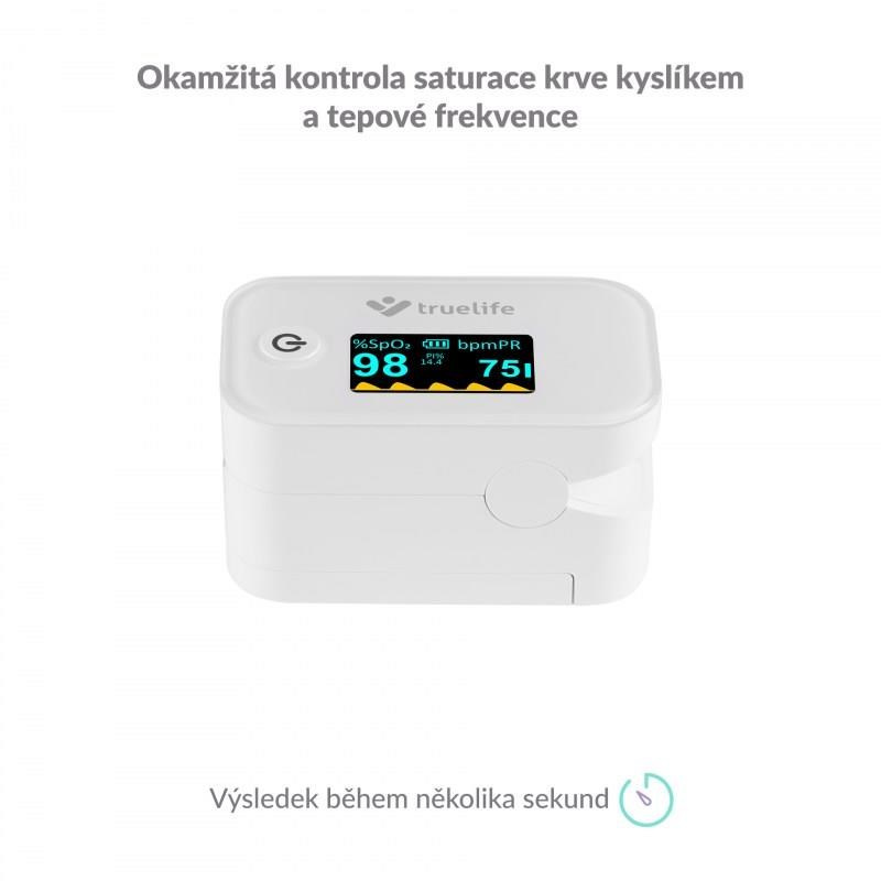 Oxymeter TrueLife X3 zabezpečí okamžité a presné meranie saturácie krvného hemoglobínu kyslíkom a tepovej frekvencie. Namerané hodnoty okamžite a prehľadne zobrazí na vstavanom displeji. Je vhodný najmä pre pacientov s respiračnými ochoreniami alebo srdcovými problémami, ale aj pre vrcholových športovcov. Nájde uplatnenie v lekárničke každej domácnosti.