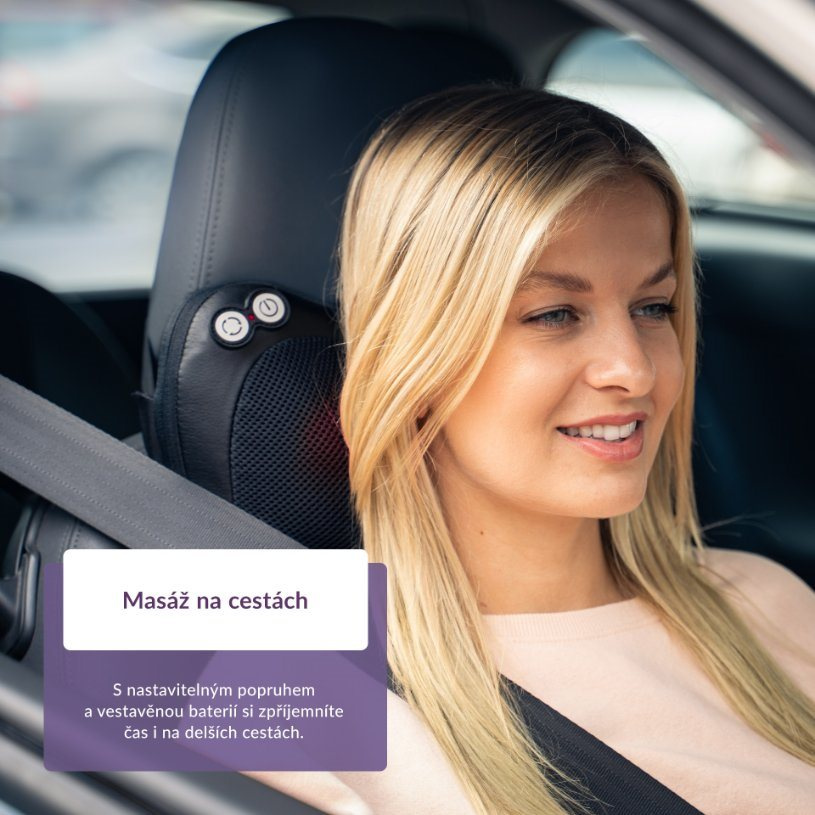 Dnešná doba je veľmi stresujúca a nášmu zdraviu neprospievajú ani sedavé zamestnania. Je teda dobré mať po ruke pomocníka, ktorý napomáha zmierňovať bolesti chrbta a šije, regenerovať svaly a znižovať svalové napätie a stres. Je ním masážny vankúš RelaxBack B3 Charge s funkciou vyhrievania. Dve rotačné hlavice so štyrmi nahrievacími hĺbkovými masážnymi uzlami napodobňujú tlakové a hnetacie pohyby masáže Shiatsu. Zvoliť je možné z 3 úrovní rýchlosti, kedy každú minútu dochádza k automatickej zmene smeru otáčania. Časovač je nastavený na 15 minút masáže a vstavaná batéria vydrží na jedno nabitie až 2 hodiny činnosti. Následné dobitie prebieha pomocou USB-C kábla. Vankúšik je možné jednoducho prichytiť nastaviteľným popruhom k stoličke a praktický je aj návlek na nohy pre masáž chodidiel. Ovládanie prístroja je ľahké, každá z funkcií má svoje tlačidlo. Ani údržba masážneho vankúša nie je vôbec zložitá, obliečka zo syntetickej kože a priedušnej sieťoviny šetrnej k pokožke stačí utrieť navlhčenou handričkou.
