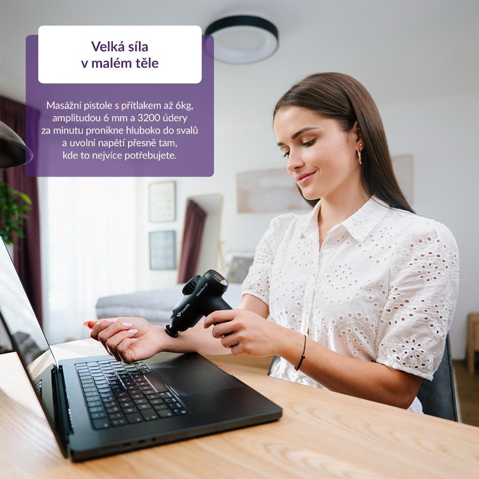 Či už športujete na vrcholovej úrovni, pracujete ako fyzioterapeut, trávite väčšinu dňa pri počítači, alebo len hľadáte efektívny spôsob, ako uľaviť unaveným svalom, masážna pištoľ TrueLife RelaxGun G1 je ideálnou voľbou pre regeneráciu aj relaxáciu. Ponúka 30 úrovní intenzity, prítlak 6 kg a frekvenciu až 3200 kmitov za minútu, takže sa ľahko prispôsobí vašim potrebám – od jemnej relaxačnej masáže až po intenzívnu hĺbkovú terapiu. Štyri vymeniteľné silikónové hlavice umožňujú cielenú starostlivosť o rôzne časti tela, zatiaľ čo inteligentné funkcie ako automatický frekvenčný prítlak a bezpečnostné zastavenie (Safety stop) zaistia maximálny komfort a bezpečie. S tichou prevádzkou, dlhou výdržou batérie až 3 hodiny a moderným USB-C nabíjaním je TrueLife RelaxGun G1 ideálnym pomocníkom doma, vo fitku, v práci aj na cestách. Doprajte si starostlivosť kedykoľvek potrebujete – pre rýchlu regeneráciu, úľavu od bolesti, prevenciu zranení aj podporu celkovej pohody.