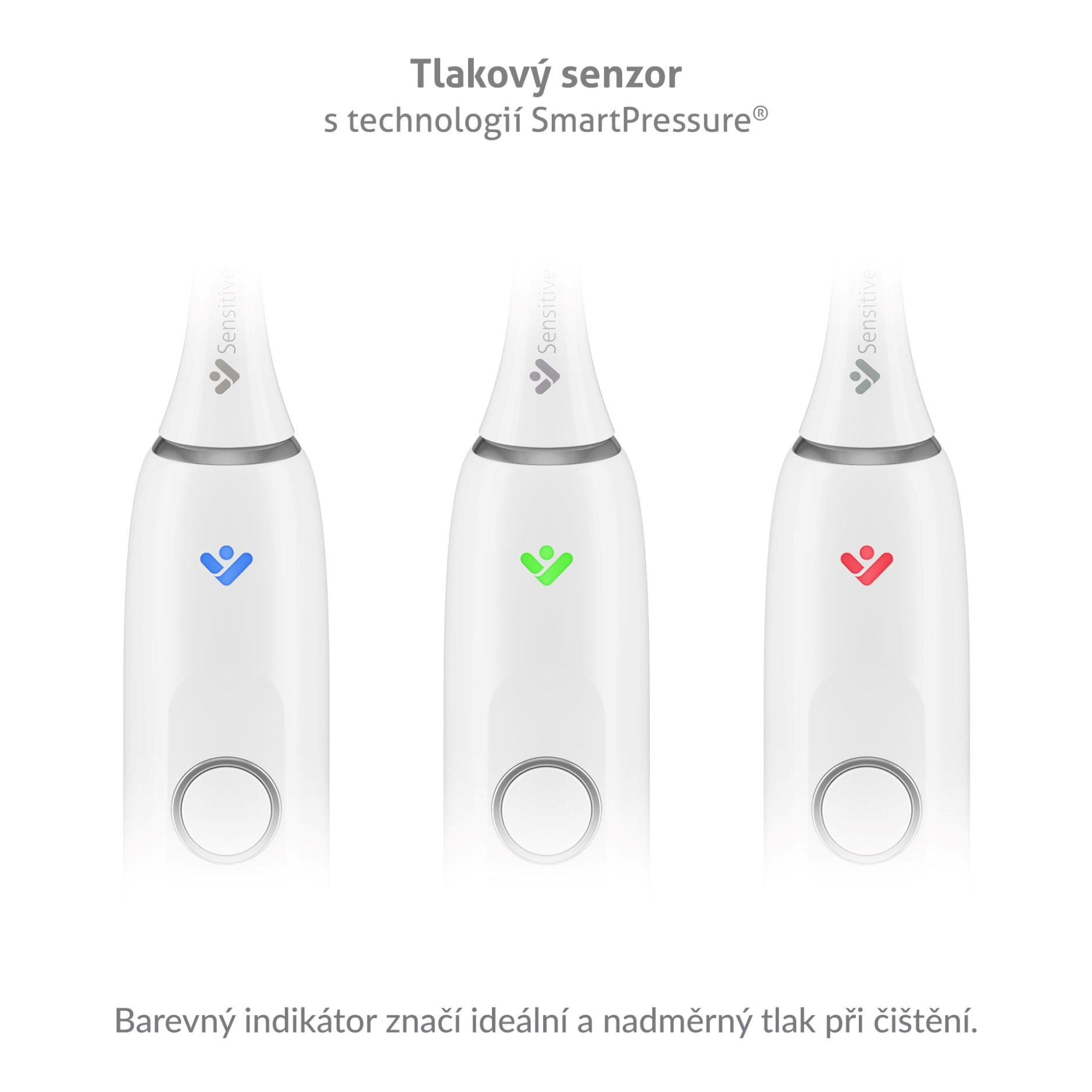 Aby prílišný tlak hlavice na zuby a ďasná nespôsobil zdravotné problémy, je kefka vybavená tlakovým senzorom, ktorý rozpoznáva mieru tlaku a farebným indikátorom viditeľným z prednej aj zadnej strany upozorní, či je potrebné pri čistení zvoľniť.