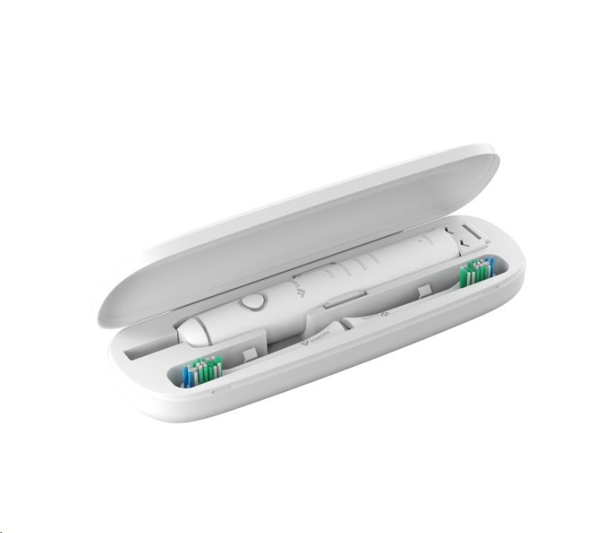 Telá kefiek sú kompaktné a veľmi ľahké. 30-dňová výdrž batérie kefiek vám zabezpečí, že nemusíte na cestách riešiť nabíjanie. Dve cestovné púzdra v bielej a čiernej farbe, zaručia bezpečné a hygienické uloženie kefky.