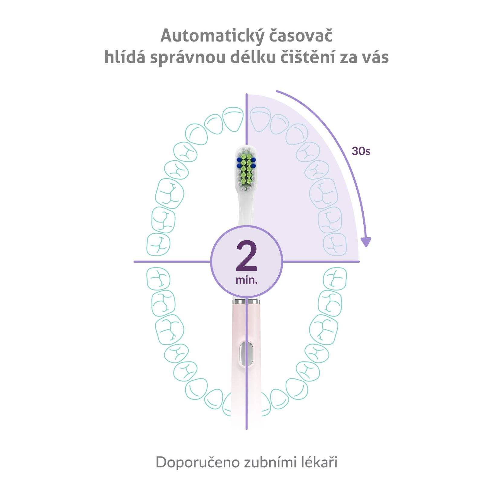Nastavený 2-minútový interval sa delí do štyroch 30-sekundových sekcií, kedy po každej z nich nastane krátka pauza upozorňujúca, že je čas prejsť na čistenie ďalšej časti chrupu.