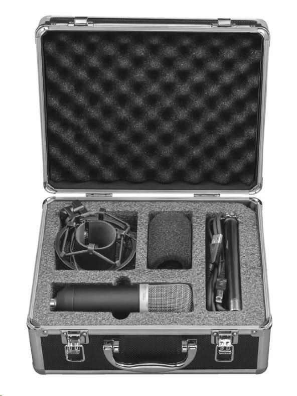 | Obsah balenia | Letecký kufor Mikrofón Kábel USB Pop-filtre Nárazový držiak Stolný stojan Používateľská príručka |