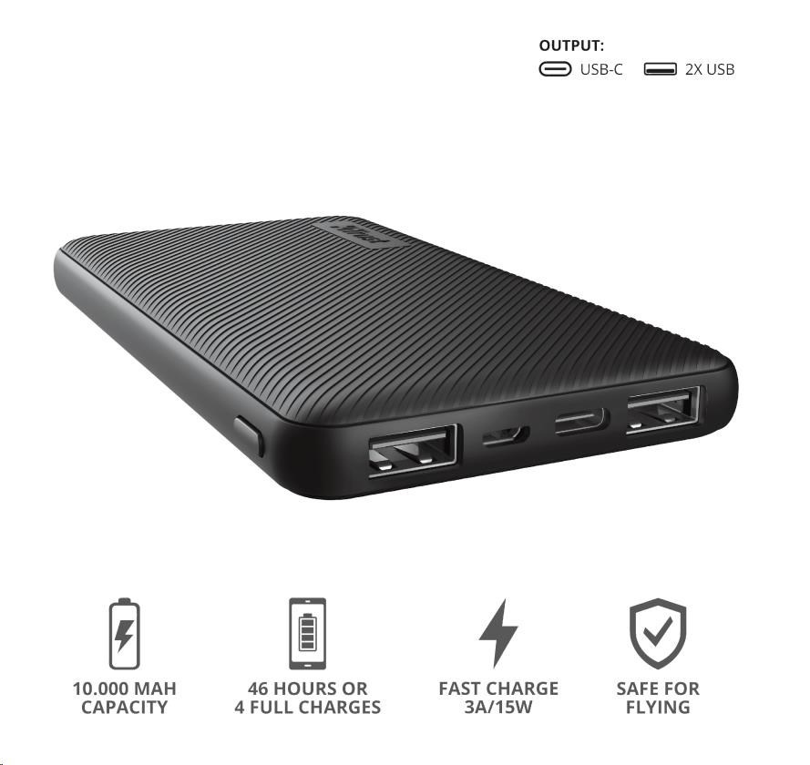 - Fast-recharge the powerbank via included micro-USB cable or USB-C port